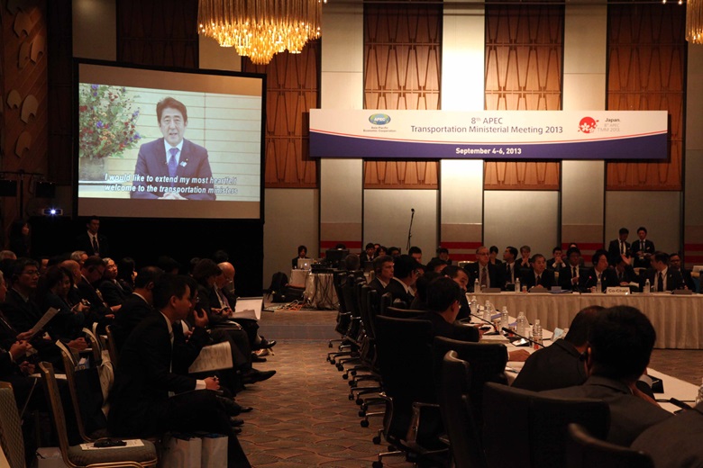 Akihiro Ohta, Japan's Minister of Land, Infrastructure, Transport and Tourism, and Co-Chair of the 8th APEC Transport Ministerial MeetingShinzo Abe, Prime Minister, JapanEvert Erenst Mangindaan, Indonesia's Minister of Transportation and Co-Chair of the 8th APEC Ministerial MeetingDr Alan Bollard, Executive Director, APEC SecretariatFront row from left to right: Evert Erenst Mangindaan, Indonesia's Minister of Transportation and Co-Chair of the 8th APEC Ministerial Meeting; and Akihiro Ohta, Japanâs Minister of Land, Infrastructure, Transport and Tourism, and Co-Chair of the 8th APEC Transport Ministerial Meeting