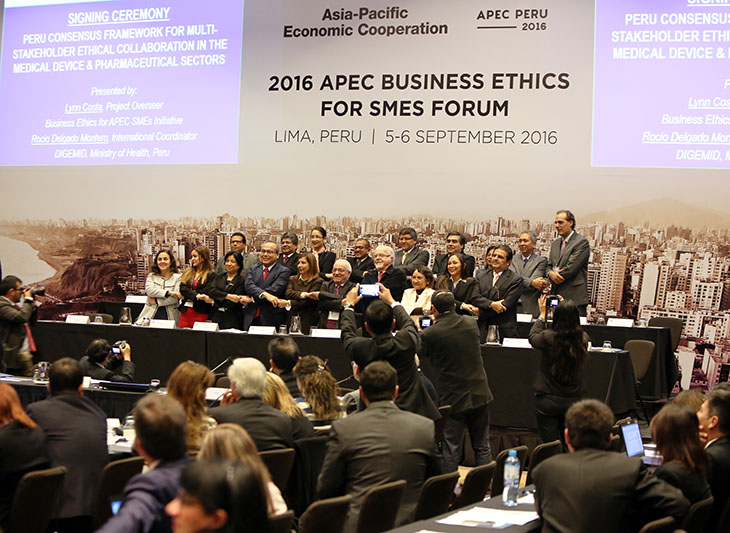 The signing of Peru’s consensus framework by 22 parties took place during an APEC business ethics forum in Lima, ahead of a key meeting of Ministers from the region here on Friday to propel small and medium enterprise development. Canada’s new consensus framework was also recognized by forum delegates.