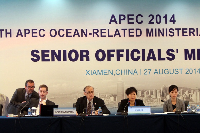 Senior Officials’ Meeting at the 4th APEC Ocean-Related Ministerial Meeting in Xiamen, China on 27 August 2014From left to right: Zhang Haiwen, Director General, Department of International Cooperation, State Oceanic Administration, China; Chen Lianzeng, Vice Administrator, State Oceanic Administration of China; and Greg Schneider, Chair of the APEC Ocean and Fisheries Working Group.From left to right: Alex Rogers, Program Director at the APEC Secretariat; Dr Alan Bollard, Executive Director of the APEC Secretariat; and Zhang Haiwen, Director General, Department of International Cooperation, State Oceanic Administration, China.Representatives from the United StatesRepresentatives from Chinese TaipeiSenior Officials’ Meeting at the 4th APEC Ocean-Related Ministerial Meeting in Xiamen, China on 27 August 2014Representatives from JapanRepresentatives from ChinaRepresentatives from ChinaFrom left to right: Greg Schneider, Chair of the APEC Ocean and Fisheries Working Group; Alex Rogers, Program Director at the APEC Secretariat; Dr Alan Bollard, Executive Director of the APEC Secretariat; and Zhang Haiwen, Director General, Department of International Cooperation, State Oceanic Administrataion of China.